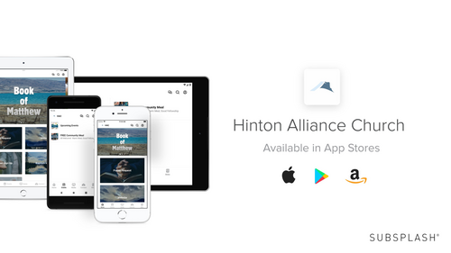 Watch the livestream on the web or on our Hinton Alliance Church App (found in Google Playstore or Apple App Store)